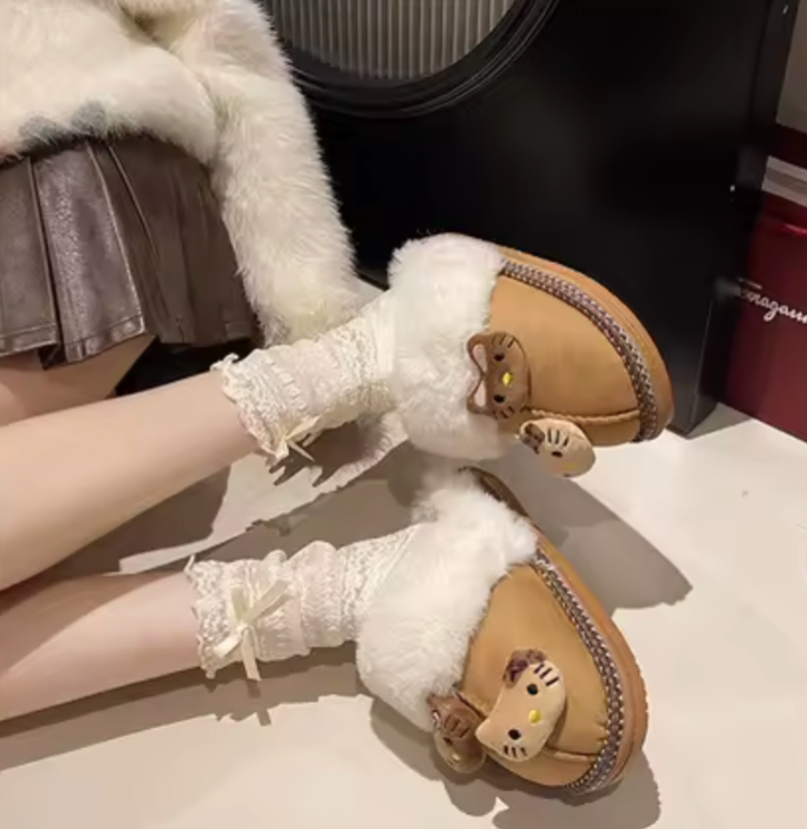 Answer 3: These cute Hello Kitty uggs add a fun and cozy touch to your at-home loungewear. Pair them with pajamas, sweatpants, or a comfy robe to complete your relaxed, adorable indoor look.